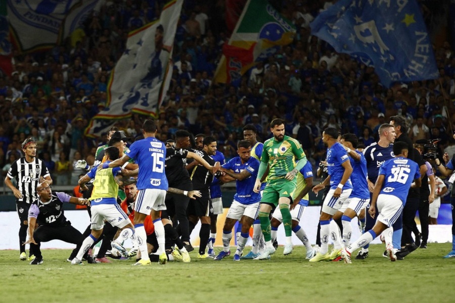 В концовке встречи игроки устроили потасовку на поле.