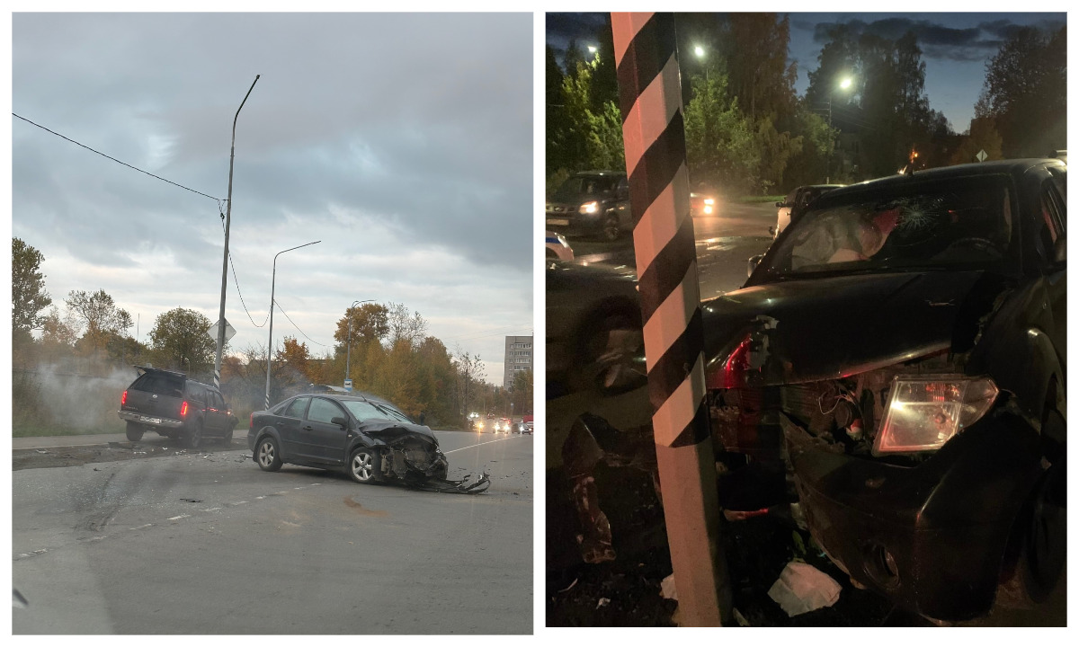 Вчера, 7 октября, около 17:24 в Петрозаводске на перекрестке улиц Пограничной и Боровой столкнулись два автомобиля. Один из них после столкновения влетел в фонарный столб. По предварительным данным, 30-летний водитель Nissan выехал на «встречку» и врезался в Ford, который поворачивал налево со второстепенной дороги. От удара Nissan отбросило в сторону — машина влетела в столб. В [R