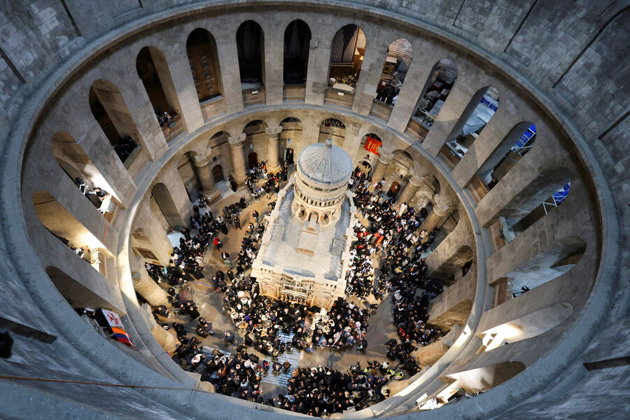 Благодатный огонь сошел в храме Гроба Господня в Иерусалиме. Об этом сообщает делегация Фонда Андрея Первозванного, передает РИА Новости.