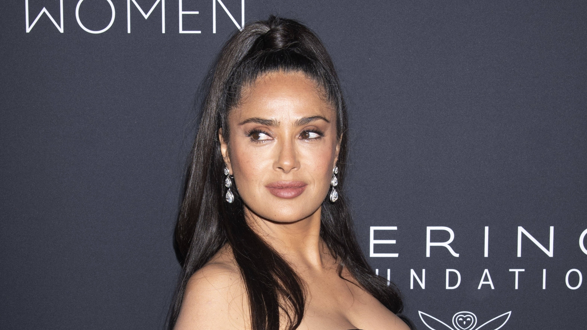 Голливудская актриса Сальма Хайек появилась на публике в платье с декольте.