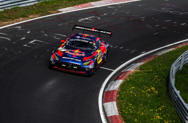 Примерно через полчаса после старта гонки серии NLS на Нюрбургринге она была надолго остановлена красными флагами, и машины вернулись на пит-лейн. В том числе Mercedes-AMG в цветах Red Bull, на котором выступает Макс Ферстаппен...