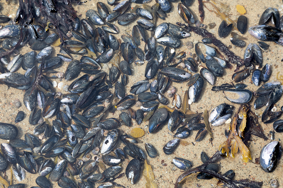 Границу литорали легко узнать по полосе штормовых выбросов, которые состоят в основном из водорослей, оборванных волнами.