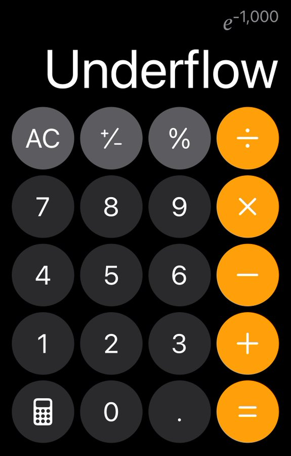Калькулятор должен показывать результат математического выражения, которое вы ввели, и это намного, намного сложнее, чем кажется. То, что я собираюсь вам рассказать, — это величайшая история о разработке приложения-калькулятора. Взгляните на калькулятор iOS. Что-нибудь заметили? Он показывает неверный результат. (10^100) + 1 − (10^100) равно 0, а не 1. В Android всё правильно. И история о том, как это произошло, совершенно безумна.