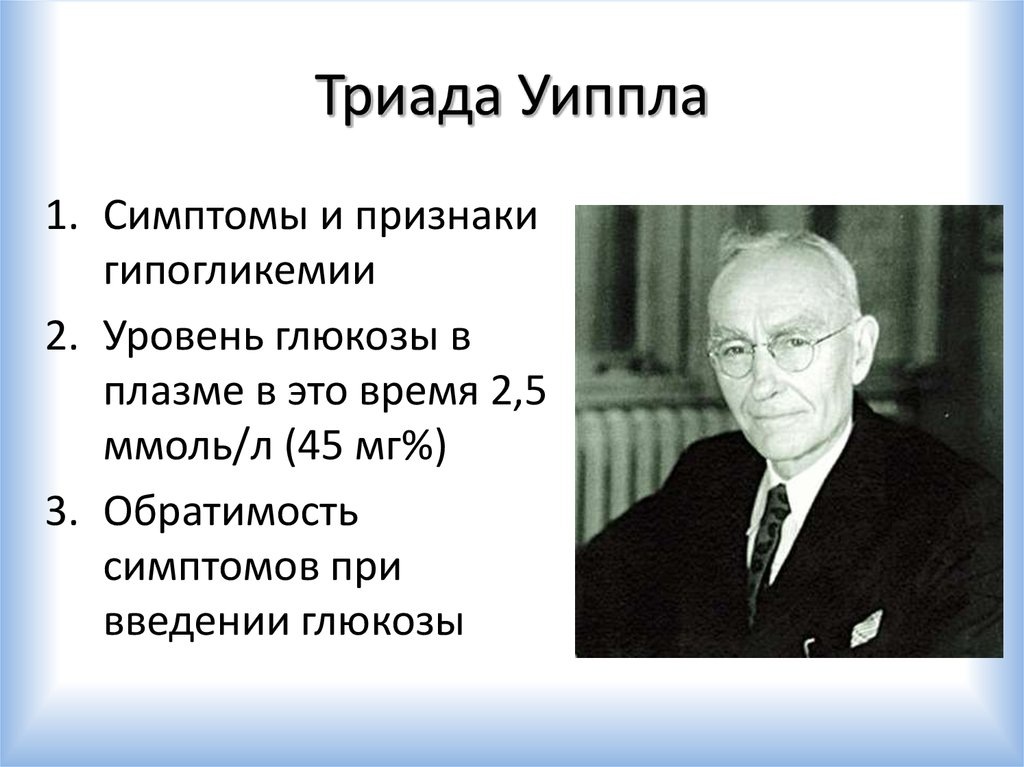 Конечно, такой диагноз по одному только высокому инсулину мы не ставим. Инсулин в крови и сам по себе очень непостоянный, да и это не первое, на что мы смотрим. Ранее диагноз мы ставили по так называемой триаде Уиппла: