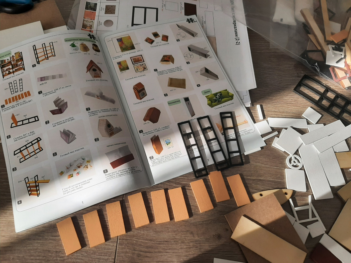 ❌Много мелких деталей вроде книг для книжного шкафа, бумажных цветов, пакетов молока и семян из бумаги. Красоты они не добавляют, а возиться с ними очень нудно и долго.